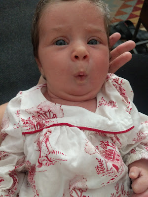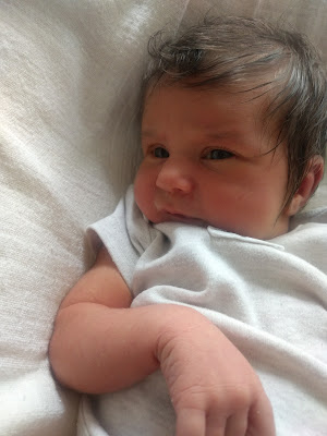 Florence has had a littlebit of jaundice, so has been sleepy and lost quite a bit of weight - but she is on a three hour eating plan and getting better without the need for lamps or hospital intervention thus far.