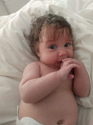 We were excited this time round, not excited and terrified and sad. They pulled her out and showed me, and it was the best feeling in the world to see her for the first time. Like her brother and other sister, she has a shock of thick brown hair, and while she looks a lot like Sebastian, she looked most like Molly with her pointier nose. Even so, she was different - she was unique all unto herself.